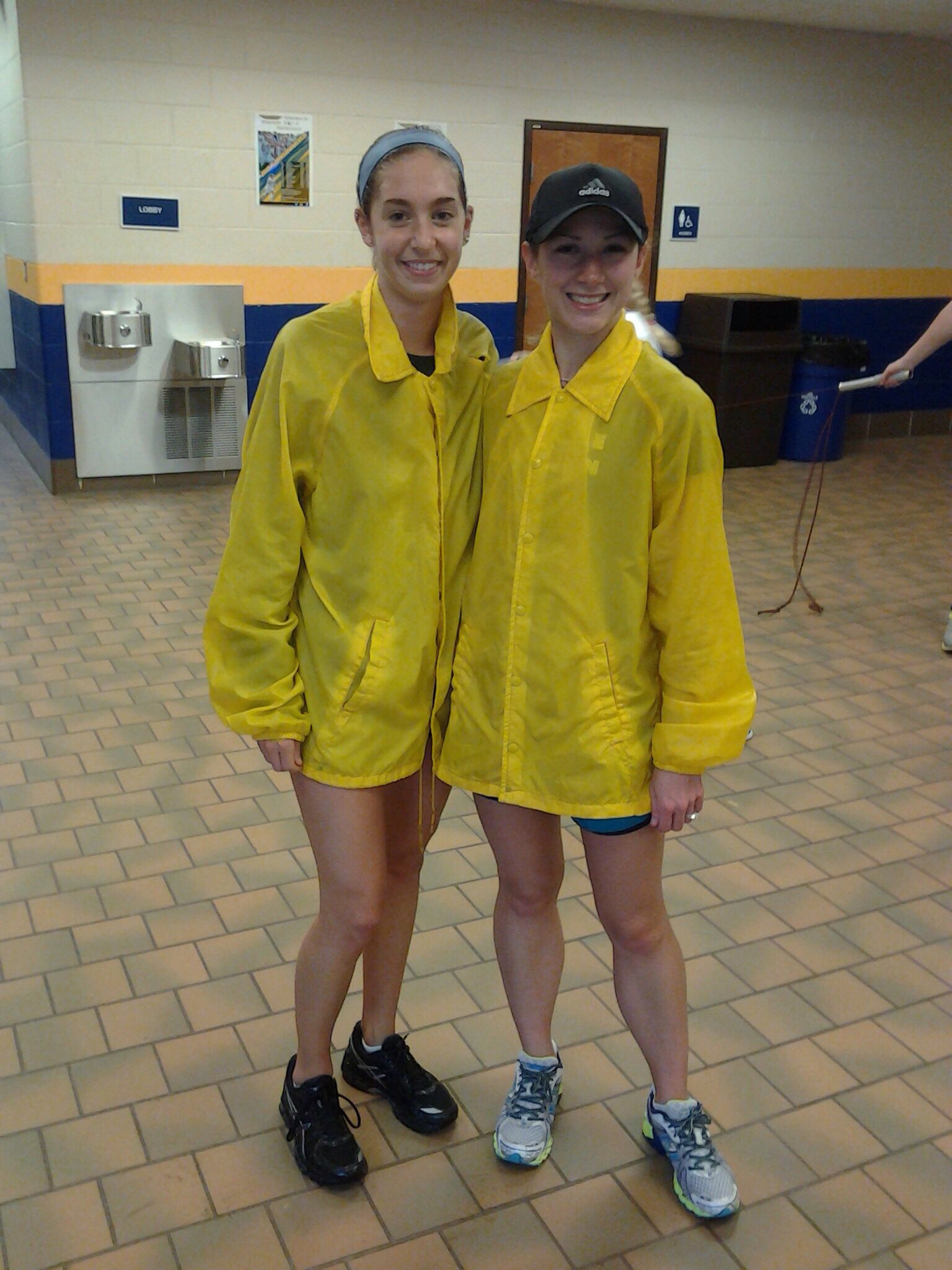 Bri & I wore these retro rain slickers. Looks like we have no shorts on.